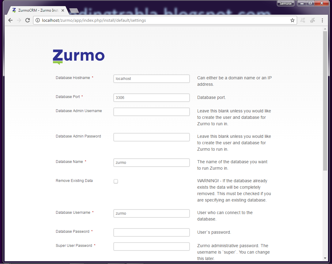Zurmo CRM Install Step 1